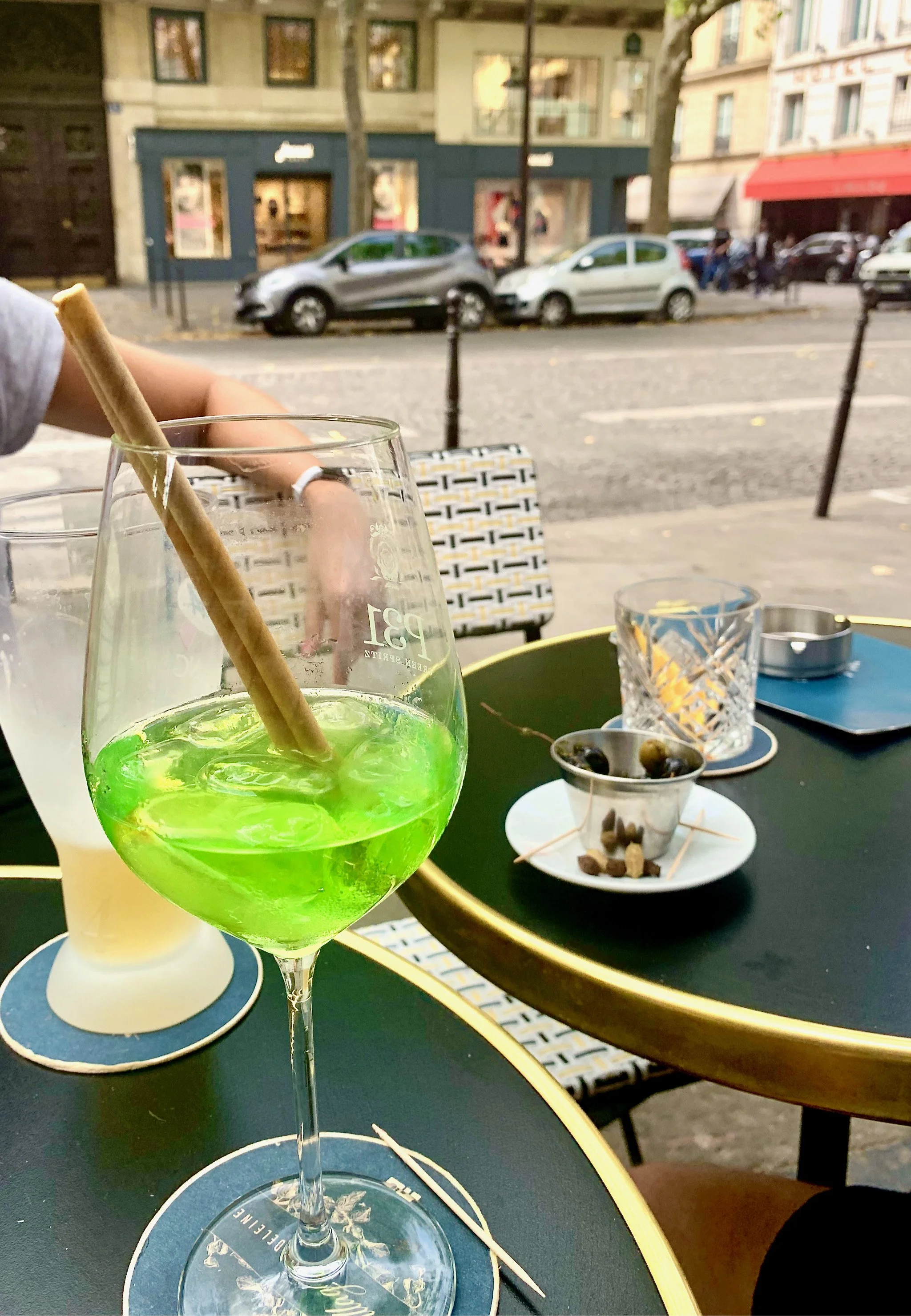 Le Village Madeline is everything cafe culture should be. For us, it was a place to meet up with my cousin in her neighborhood. It’s an anytime-of-day place with a robust menu of beverages, snacks, full meals, and staff that doesn’t think twice if you want to sit for a drink a two. It’s off the touristy path enough that they don’t hesitate to bring out olives to snack on while you drink. Some sipped on beers while I opted for a drink from their creative list of spritzers (eager to try something beyond a Campari spritz) for the summer. It had green in the name, so I wasn’t surprised when I saw a luminescent green drink placed in front of me. Even better yet, it came with chewy sweets on a stir-stick to go along with it.