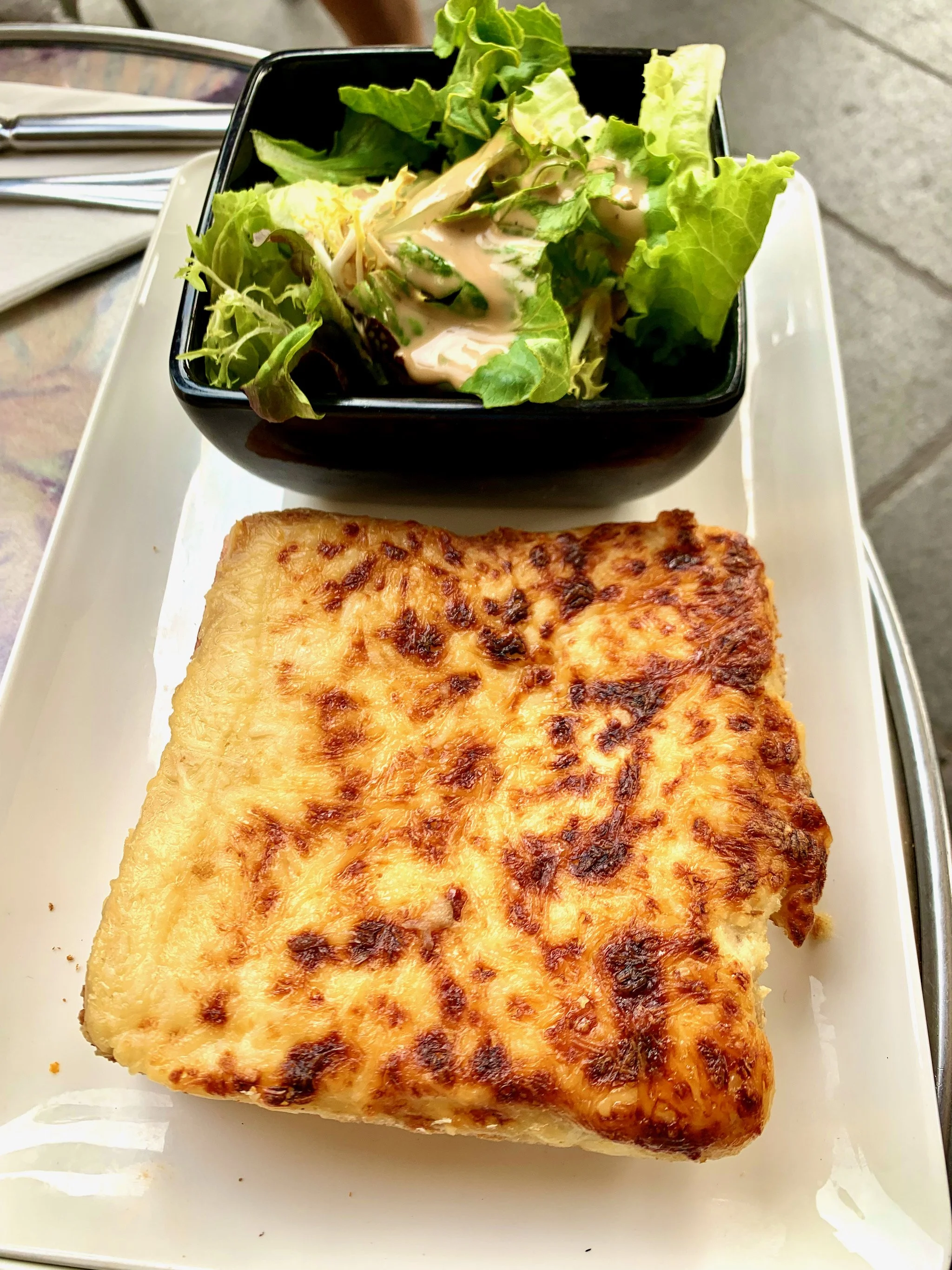 A brief note on Croque Monsieurs: In our short 36 hours, I had to create a bucket list of must-eat foods. A Croque Monsieur was definitely near the top, and at the halfway point of our time, I knew there was no time like the present. Croque Monsieurs are finicky things. I dream of the fresh, painstakingly-made, cross between French toast and a grilled ham and cheese with freshly crisped cheese on top. More often than not though, I usually end up receiving a pre-made earlier that morning, crusty bread, reheated to melt some of the cheese type of sandwich. I’m always a little disappointed, but never truly surprised. That said, I still enjoy the flavors and I accept them (Croque Monsieurs in all shapes, sizes, and textures) for what they are. Le Carrousel is one of those places that serves the latter. As I said, it’s not a place for the food as much as it is for the location. And for a place with so many people circulating through, it makes sense for them to serve it that way.
